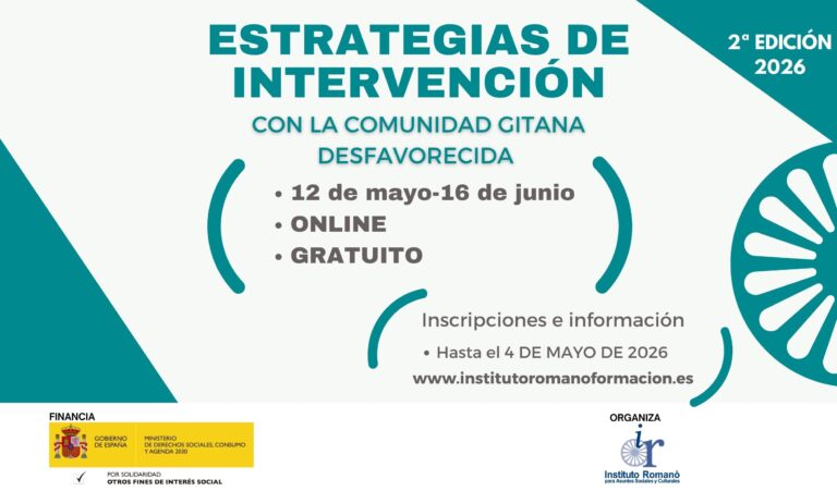 Este curso ofrece un enfoque práctico y multidisciplinar para intervenir en contextos de exclusión social. Se abordarán modelos de intervención en los ámbitos educativo, laboral, jurídico y sanitario, con especial atención a la perspectiva de género y la lucha contra la discriminación estructural. El objetivo es dotar a los participantes de herramientas que les permitan mejorar el acceso de la comunidad gitana a derechos y servicios esenciales.